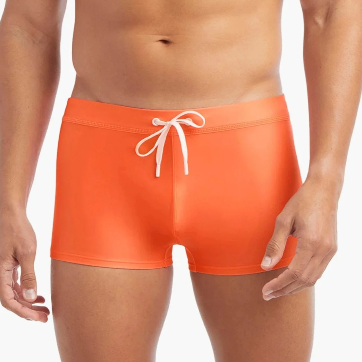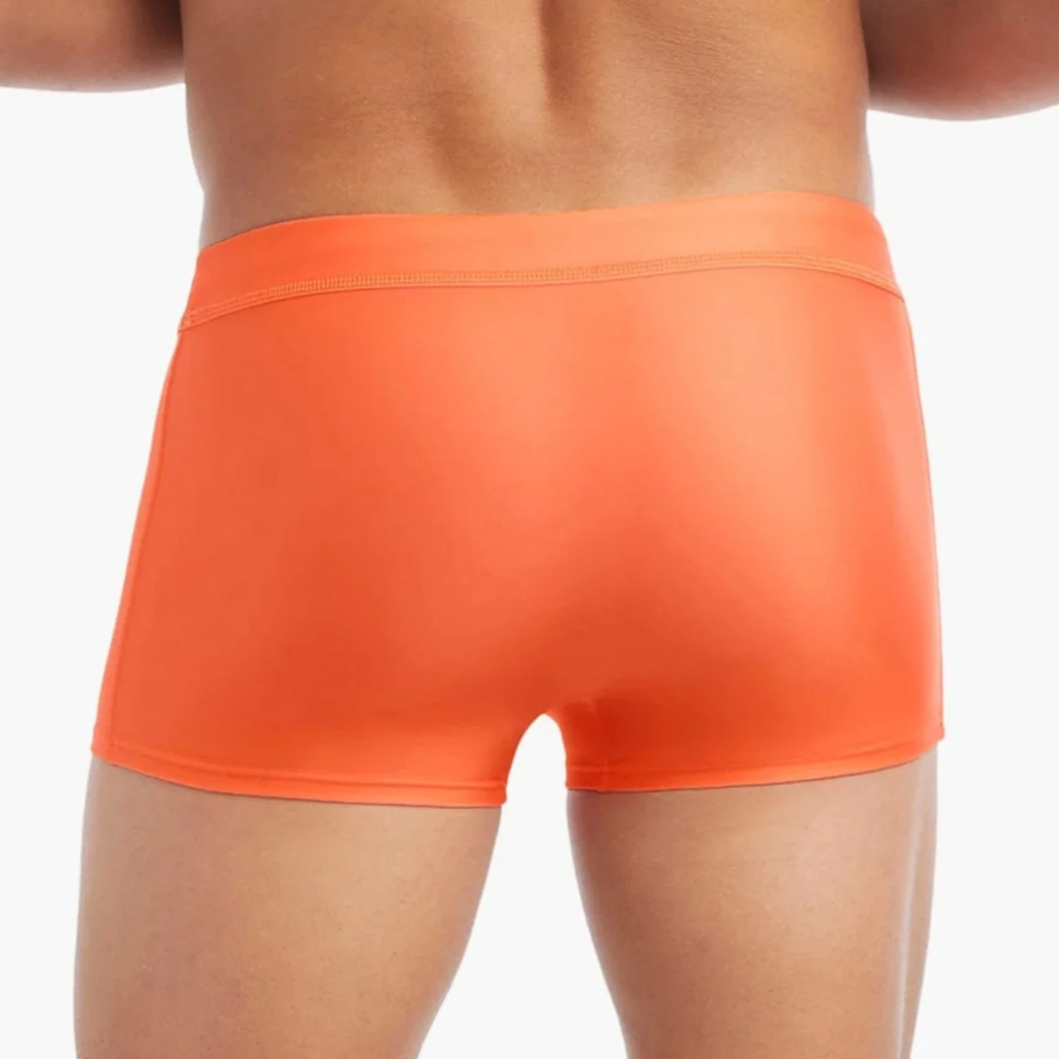 Bright sunny beaches here we come! You’ll stand out in this second-skin essential in one of the brightest hues of the season. Featuring a sporty drawstring tie and seamless back construction, these contemporary swim trunks pack a punch. An ultra-supportive built-in pouch gives you maximum coverage and support.