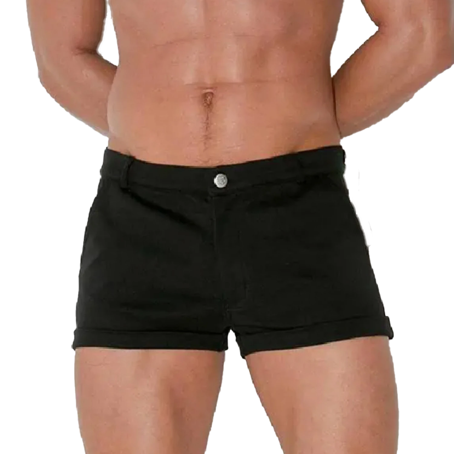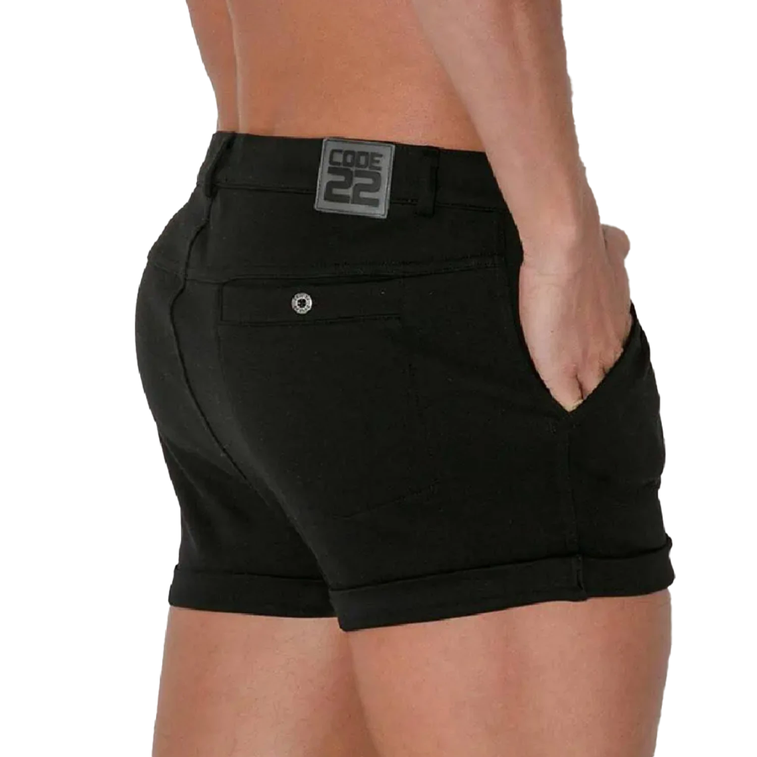 These CODE22 men’s short shorts are perfect for summer beachwear, streetwear, or clubwear. Inspired by the classic 5-pocket jean style, these shorts are always on-trend and will get you noticed. In addition, the mini shorts are a stretchy cotton and elastane blend fabric, making them super comfortable for most occasions.