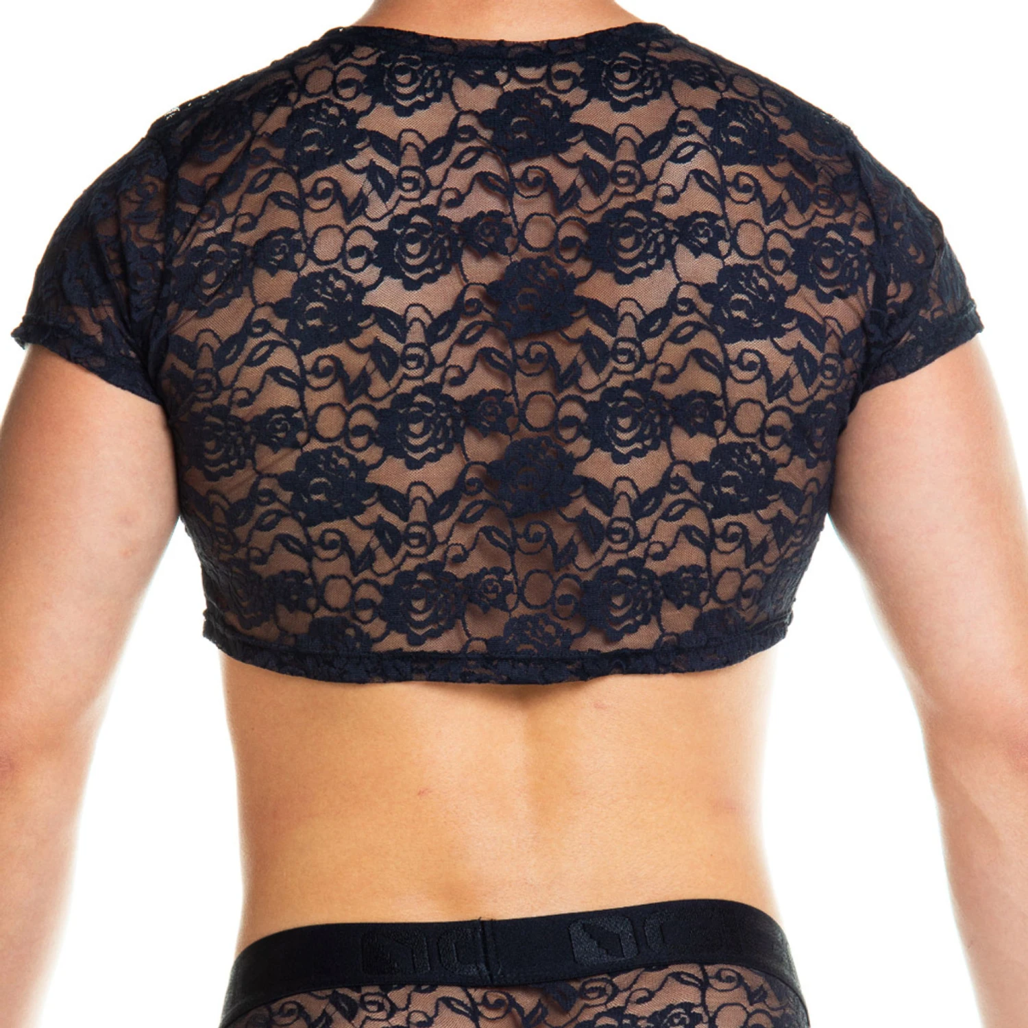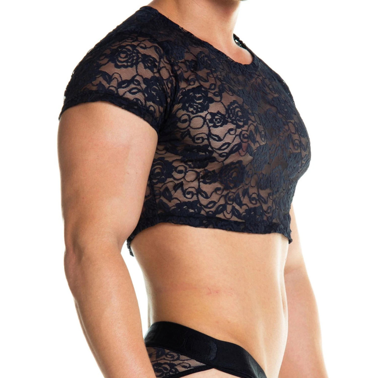 This modern Crop Top by GIGO is made of a semi-transparent lace fabric. Wear with jeans or shorts for a sexy resort look or pair with the coordinating briefs and G-string for an erotic occasion.