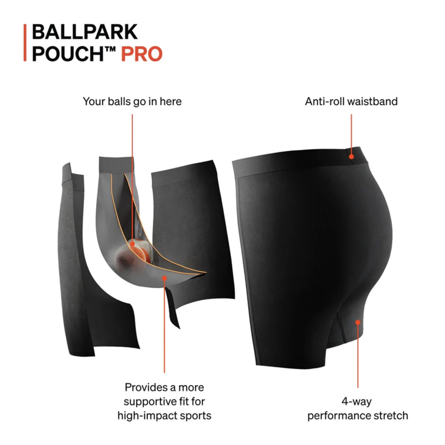 BallPark Pouch™ PRO, 4-way performance stretch, Flat Out Seams™, Three-D Fit™.