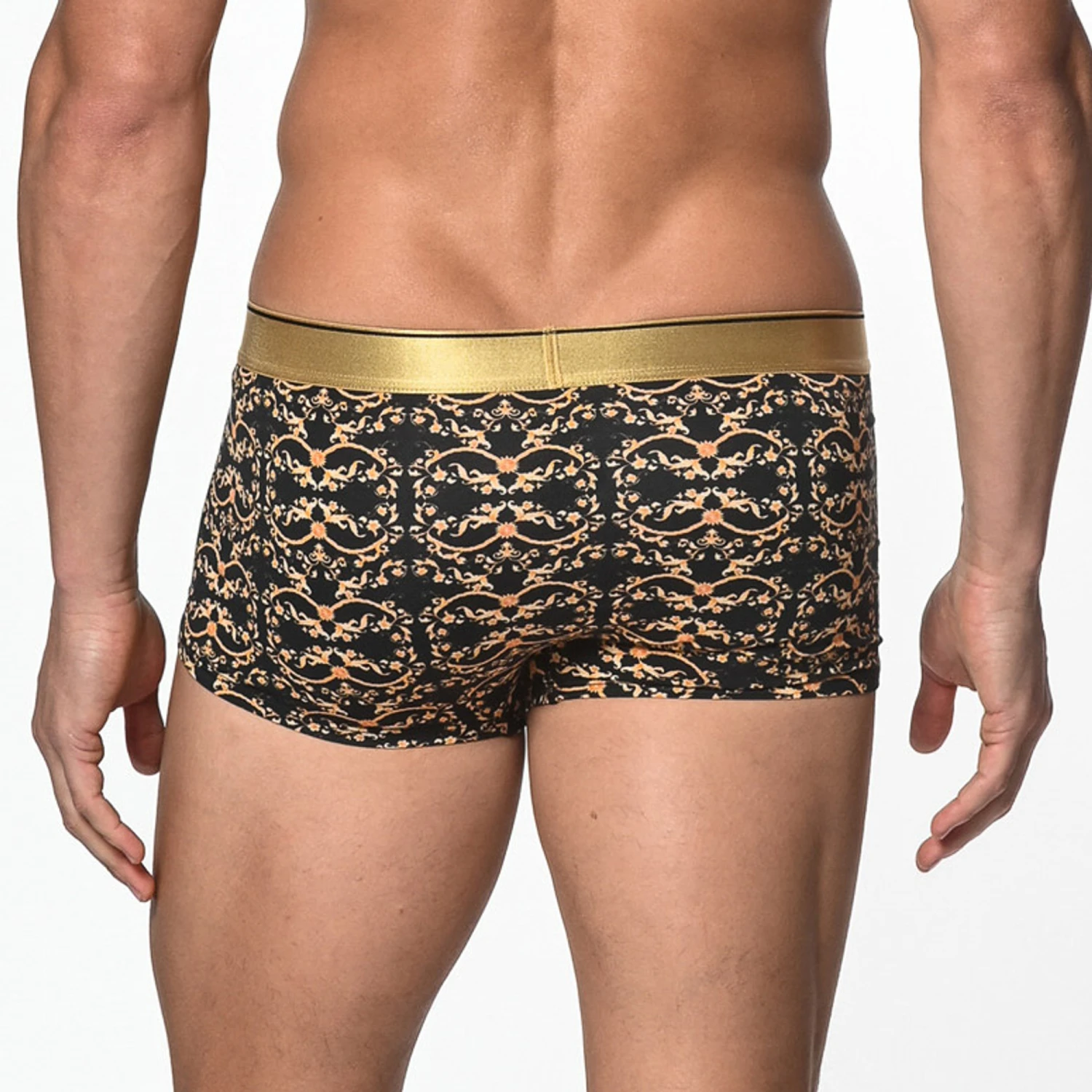 St33le – Cotton Print Low Rise Trunk – Black/Gold Filigree