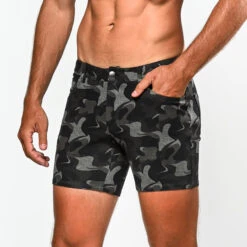 The St33le Limited Edition Stretch Knit Jeans Shorts are cut slim and feature a printed modern cylinder shadow design. The shorter length and close-to-the-body fit provide a flattering silhouette. Fabricated from an ultra-soft, 4-way stretch knit fabric for maximum comfort and performance. ST33LE is a premium line of men’s resortwear designed for form, fit, function, and style. These shorts tick all the boxes. The St33le brand offers high-performance fabrications with durability comparable to any luxury athleisure brand, with sexy, flattering fits and intentional details to show off your hard work.